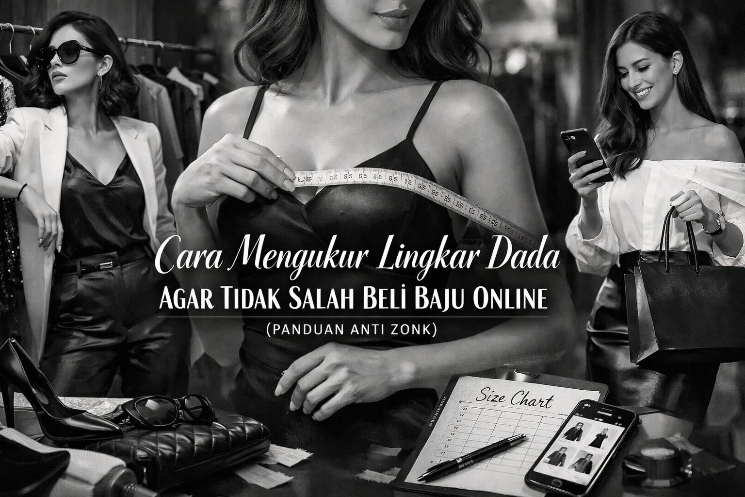 Pro Tip: Simpan ukuranmu di notes hp dengan format: “Dada: 92cm (36in), Waist: 76cm (30in), Hip: 98cm (38.5in)”. Jadi kalau belanja tinggal copy-paste aja!