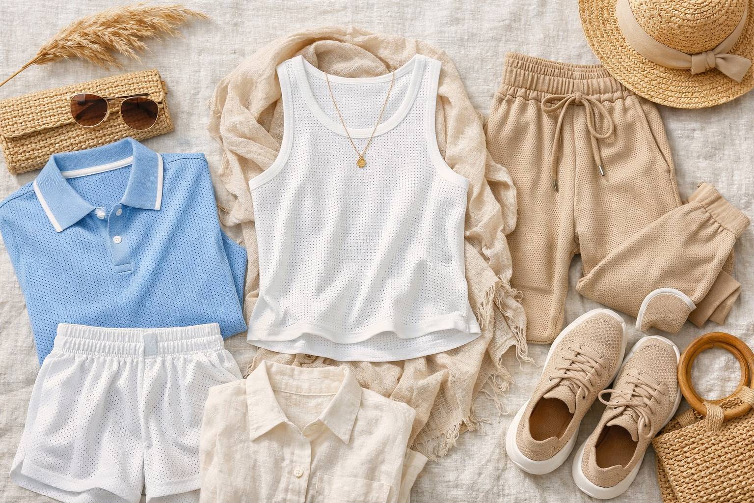 - Bikin adem: Polyester tipis, warna terang, dan punya tekstur mesh atau eyelet.