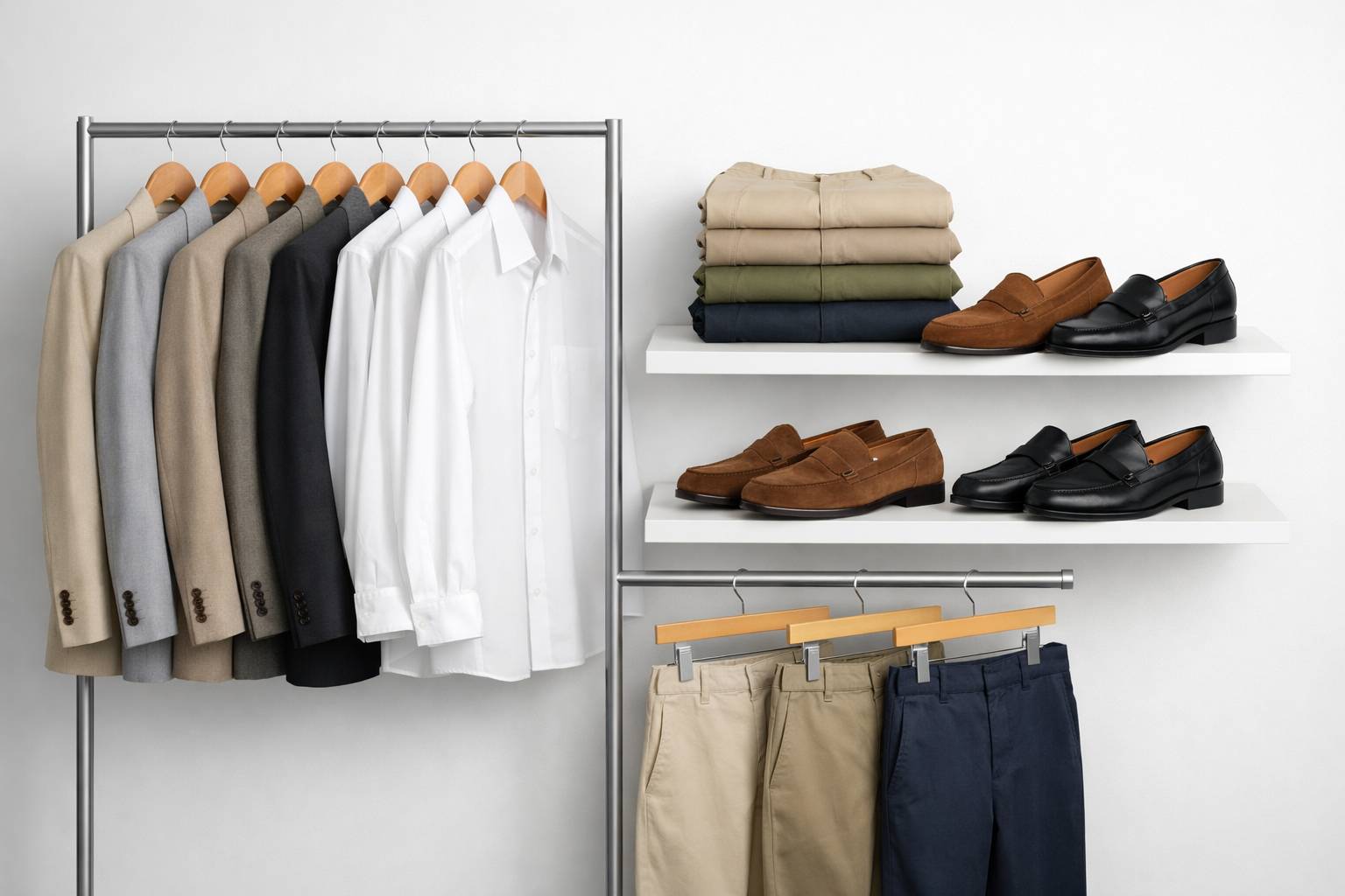 | Warna | Lebih variatif, bisa earth tone atau pastel | Netral: navy, hitam, abu-abu, putih, coklat |
