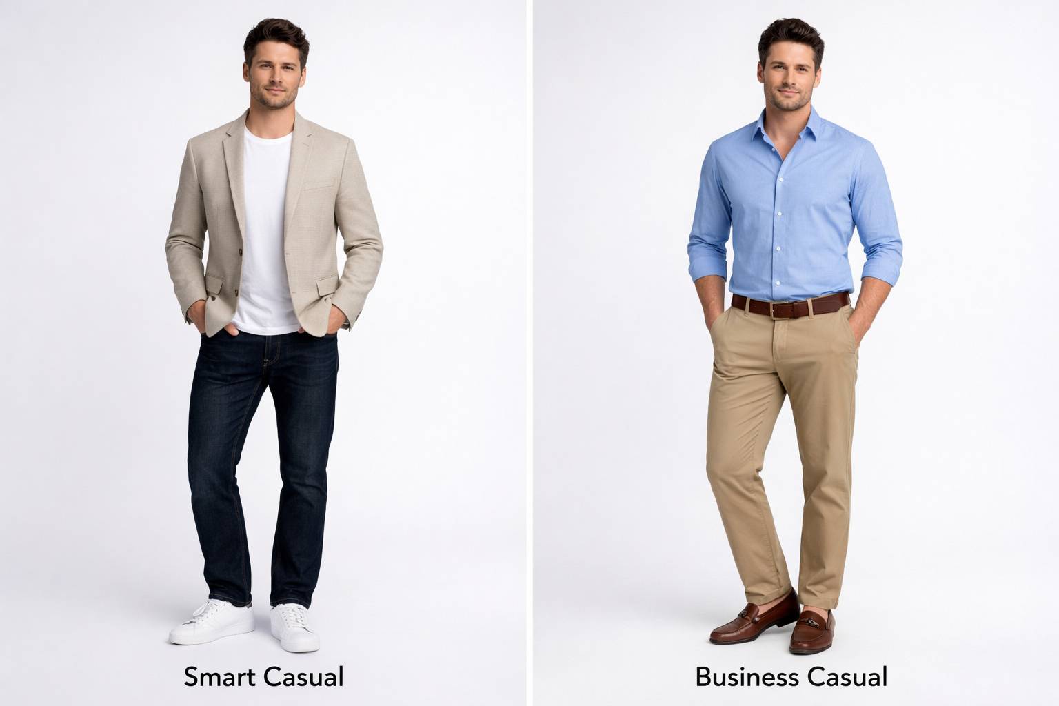 Intinya, business casual itu versi lebih “serius” dari smart casual. Bayangin kamu mau meeting sama client penting – itu business casual. Sedangkan smart casual itu kayak kamu mau nongkrong di coffee shop trendy tapi tetap keliatan profesional.